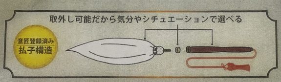 意匠登録をしてた払子構造でオリジナル金具を使い払子柄を付け替えが可能に
