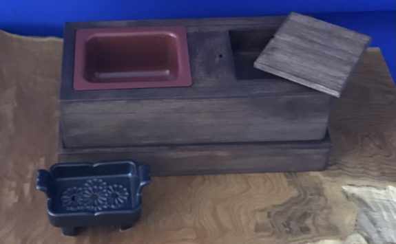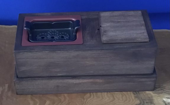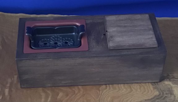 桐材なのでとても軽くお出かけに、便利な引出しは炭やライターなどを